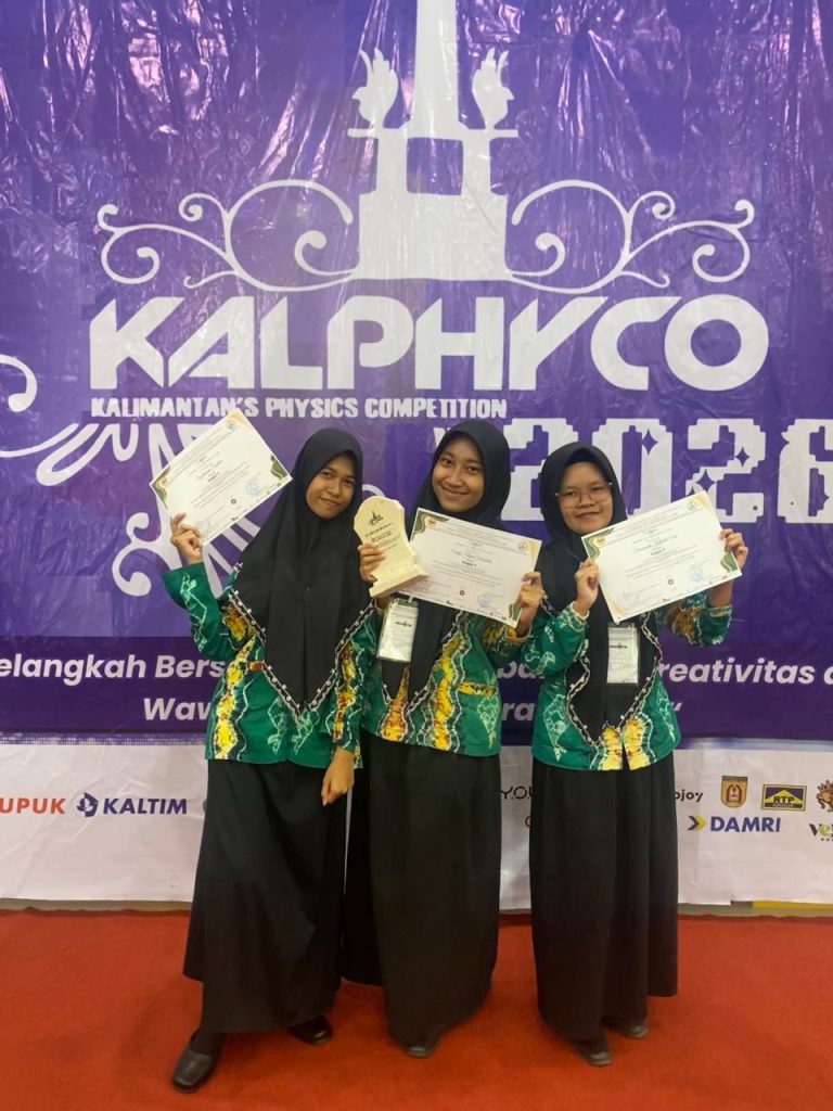 Hulu Sungai Selatan, 25 April 2026 — Prestasi membanggakan kembali diraih oleh murid SMA Negeri 2 Kandangan. Syahmina Saidah (XI A), Ernifa Noer Salsabela (XI C), dan Tsamratu Kibdah Ula (XI B), berhasil meraih Juara Harapan I dalam ajang Lomba Karya Tulis Ilmiah (LKTI) KALPHYCO 2026.